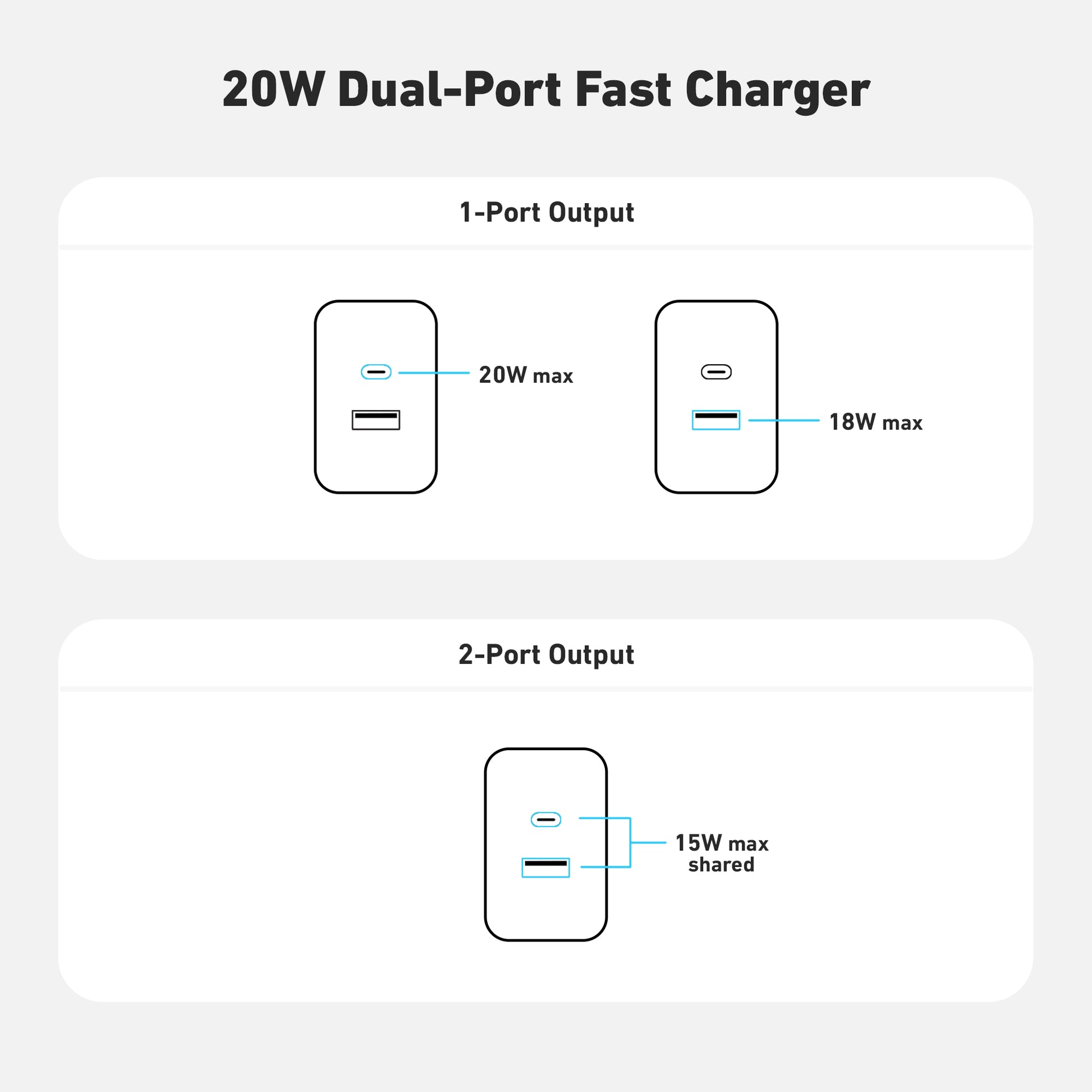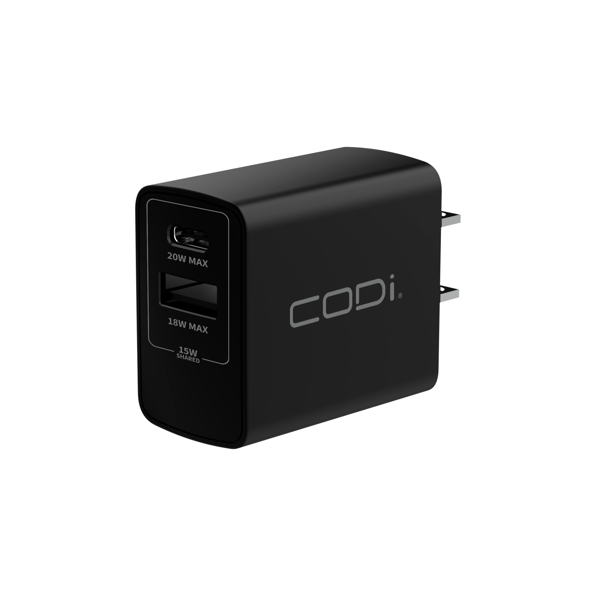 Have the assurance of a full battery bar with our 20W Dual Port Wall Charger with USB-C and USB-A Quick Charge 3.0 outputs. Simply plug the charger into a standard outlet to rapidly charge two USB-powered devices such as smartphones, tablets, iPhones, or iPads.